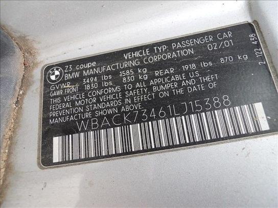 One Owner! Z3 3.0i Coupe in Very good Condition. Exterior finished in Titanium silver w/ very Clean Black Leather and Aluminum look interior trim. Nonsmoker. Dealer Maintained .New Tires. Runs and Drives Great. Equipped with Manual, 5-Spd Transmission, 6-Cyl, 3.0 Liter Engine, 17inch Cross spoke wheels, Power Glass Moonroof, Heated Seats and Mirrors, Luggage Net, On Board Computer, BMW/Harmon Kardon Sound system AM/FM Stereo and CD, All power Options, Dual Air Bags, Side Air Bags, Center Locking System, Dual Power Seats, Pre-wired for BMW security system and CD changer, and much more. Private seller ready to sell today!