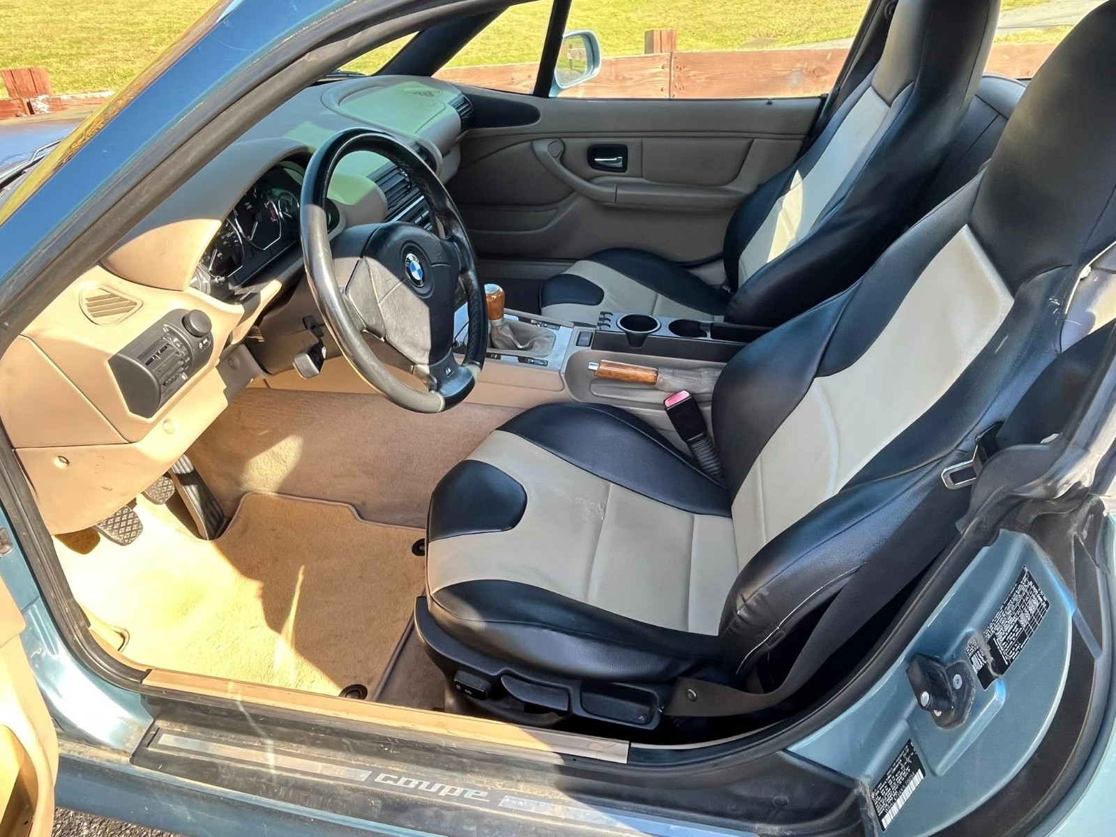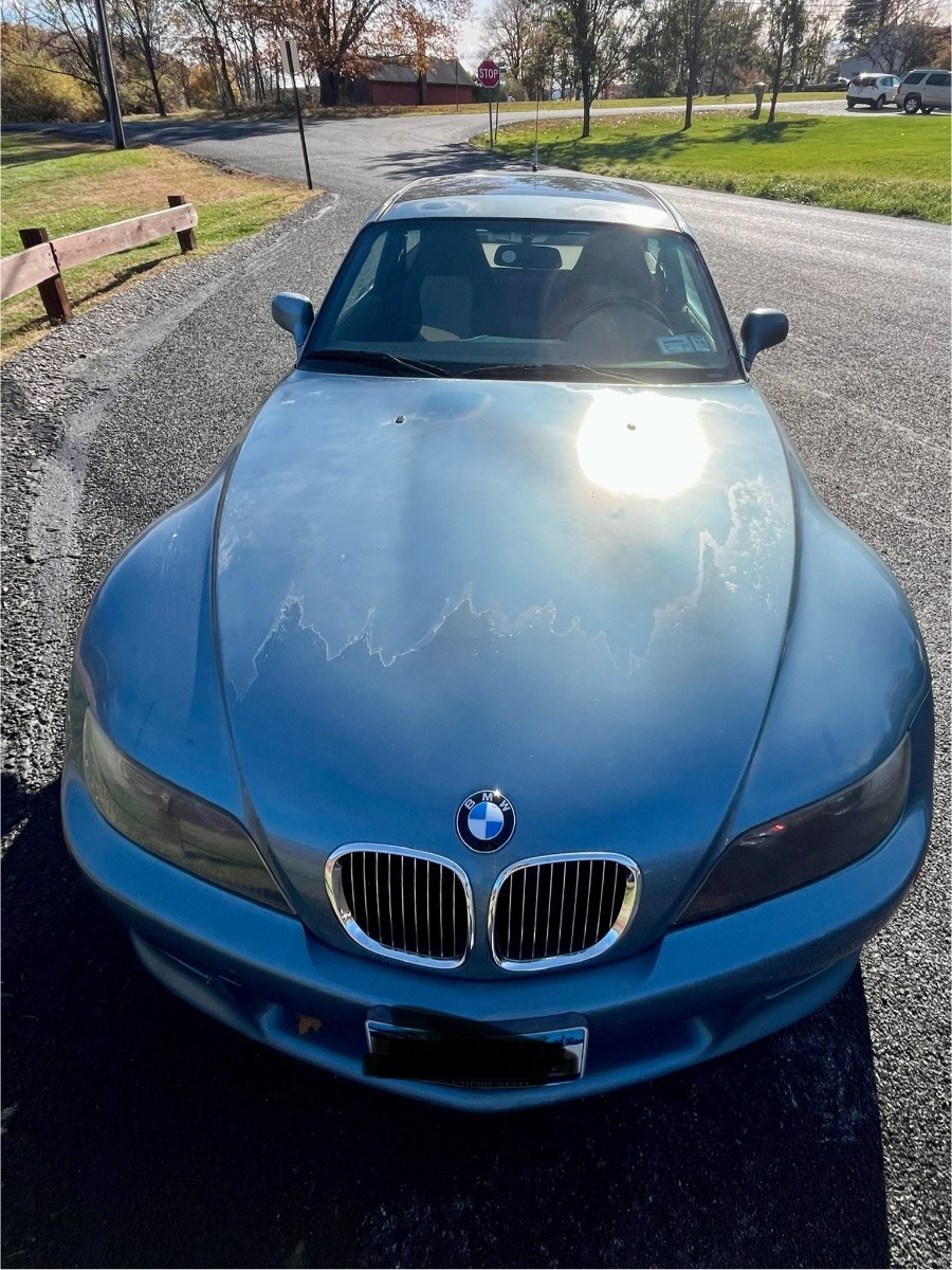 2001 Z3 Coupe 3.0L M54 engine, 5 speed, Atlanta Blue/Sand Beige. Only 1 of 11 with that combination. My daily driver from 2004 until retirement in 2016. Since then I don't use it enough. Very collectible car with a stage 2 Bilstein suspension installed in spring of 2019. See parts list attached. Summer 2024 replaced water pump, radiator, belts and hoses. Recently replaced MAS and intake manifold. This car is in great shape with the exception of the paint. ~ 18 months ago the clear coat just decided to give up. Drive as is or repaint for a head turner or possibly do a wrap. Car shown with winter tires installed. Included (at asking price) are the four split fork wheels/tires pictured. Two front summer tires have 4/16 tread. The rear tires need replacement. Just passed NY safety and emissions inspection. Clear title in my name. Will entertain offers but no low balls. If post is up, it's for sale. Will not respond to is this available. PM me if interested. I can send more pics. Local pick up only.