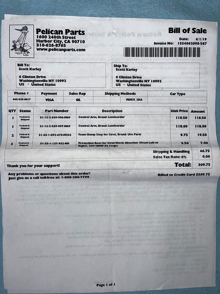 3.0L M54 engine with 5 speed manual transmission. 174,xxx miles (will increase some). Atlanta Blue metallic paint. Beige interior is clean and has custom seat covers. No fluid or oil leaks. No rust. In spring of 2019 I performed a full suspension upgrade with a stage 2 kit from Pelican Parts and it handles like a dream. Tracks straight and no drivability issues. Parts list attached. Only rear arm bushings were not installed as they were not needed. Summer 2021, I replaced water pump, radiator, fan, belts and hoses. Car is shown wearing its winter tires. The original split fork wheels are included along with all the additional parts and manual shown. I have clear NY title in my name.