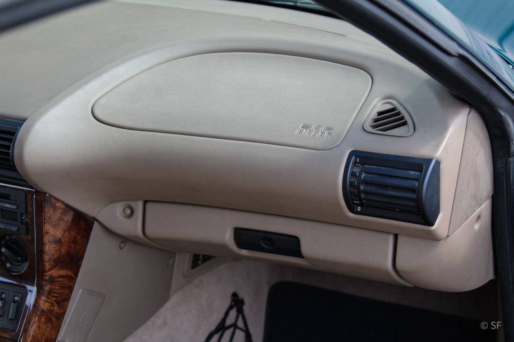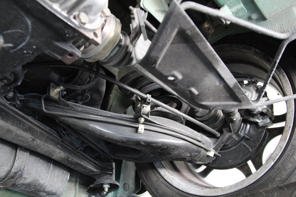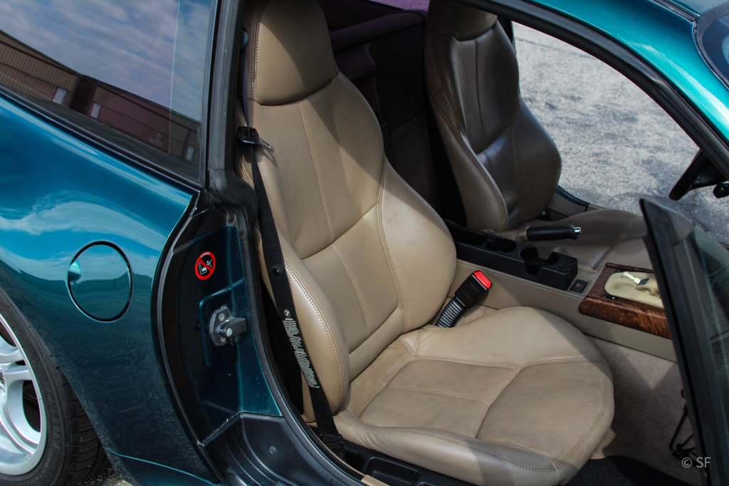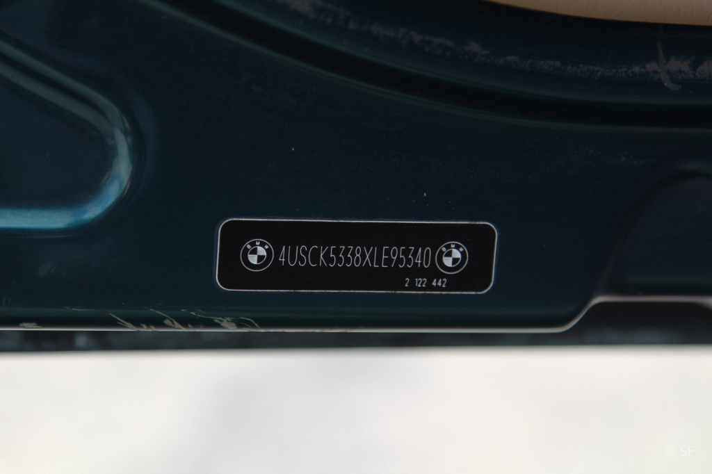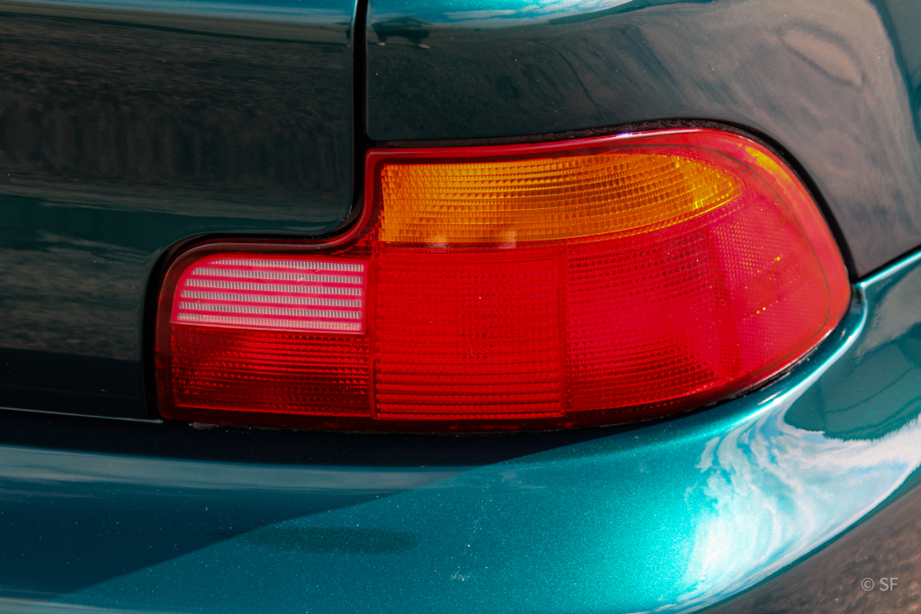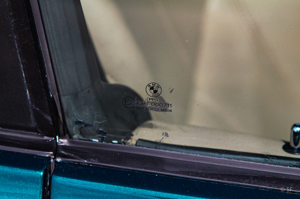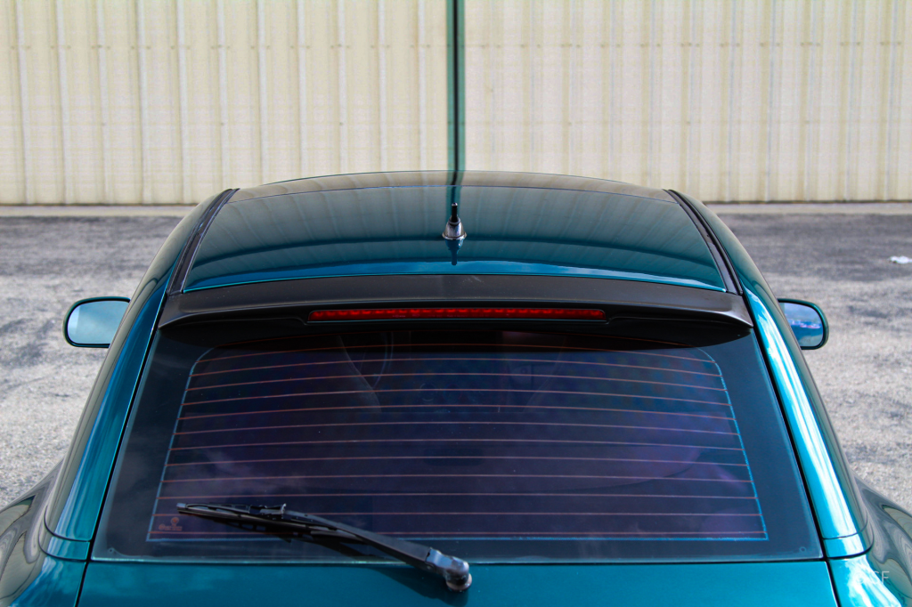 The car was finished from the factory in Boston Green Metallic (275) and has been refinished. Exterior details include a power-operated glass sunroof, fog lights, flared wheel arches, a rear window wiper, front fender vents, and dual exhaust outlets.