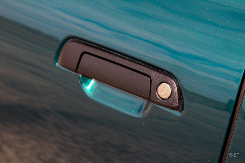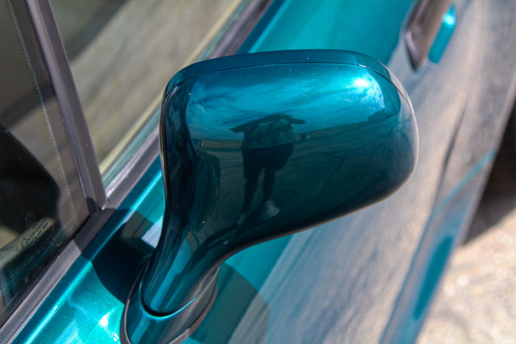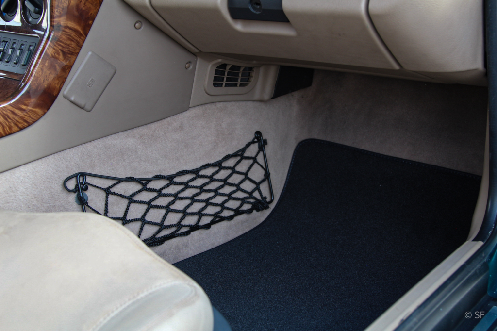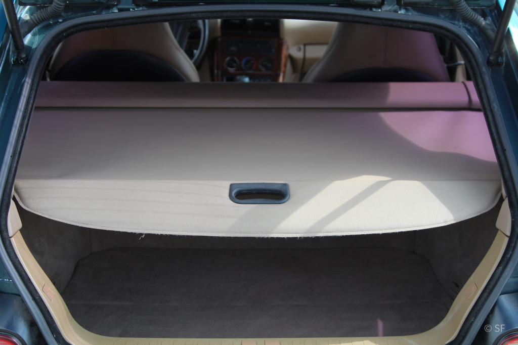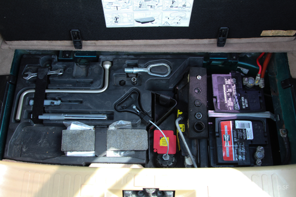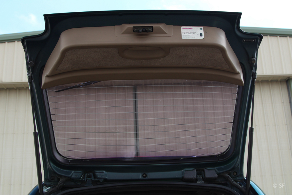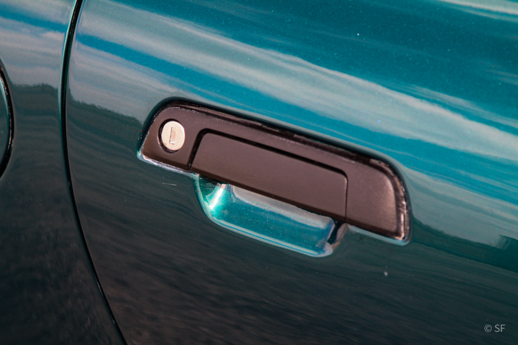 The car was finished from the factory in Boston Green Metallic (275) and has been refinished. Exterior details include a power-operated glass sunroof, fog lights, flared wheel arches, a rear window wiper, front fender vents, and dual exhaust outlets.
