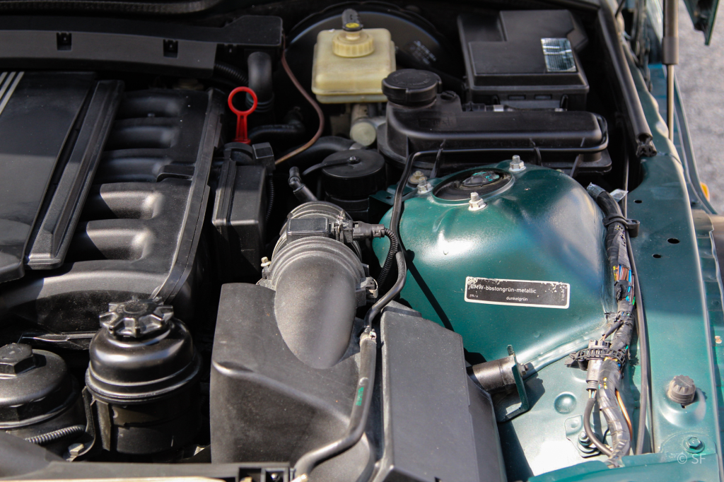 The 2.8-liter M52TUB28 inline-six was factory rated at 190 horsepower and 206 lb-ft of torque, which is sent to the rear wheels through a five-speed manual transmission. The oil was changed and the oil level sensor was replaced in August 2025.