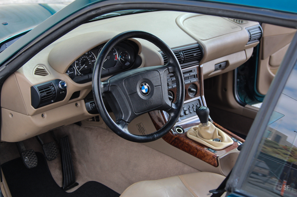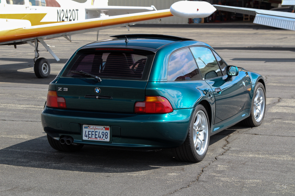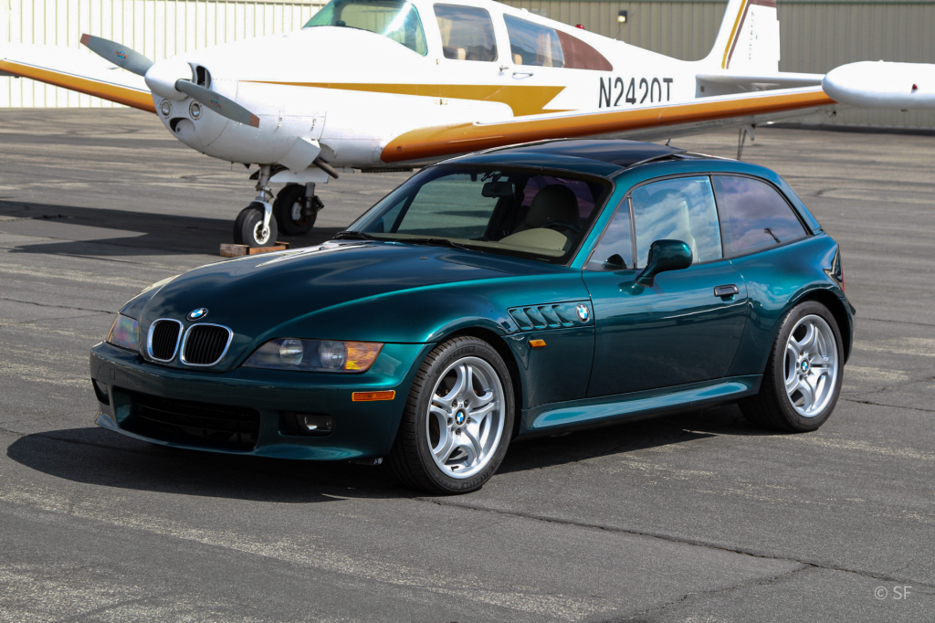 This 1999 BMW Z3 2.8 coupe has remained registered in California from new through the current owner’s purchase in 2025. Powered by a 2.8-liter inline-six paired with a five-speed manual transmission, the car is finished in Boston Green Metallic over beige leather upholstery. Equipment includes 17″ Style 68 wheels, a sunroof, heated seats, a BMW Business CD stereo, cruise control, and air conditioning. This Z3 coupe is offered by the seller on behalf of the current owner with manufacturer’s literature, a clean Carfax report, and a clean California title in the owner’s name.