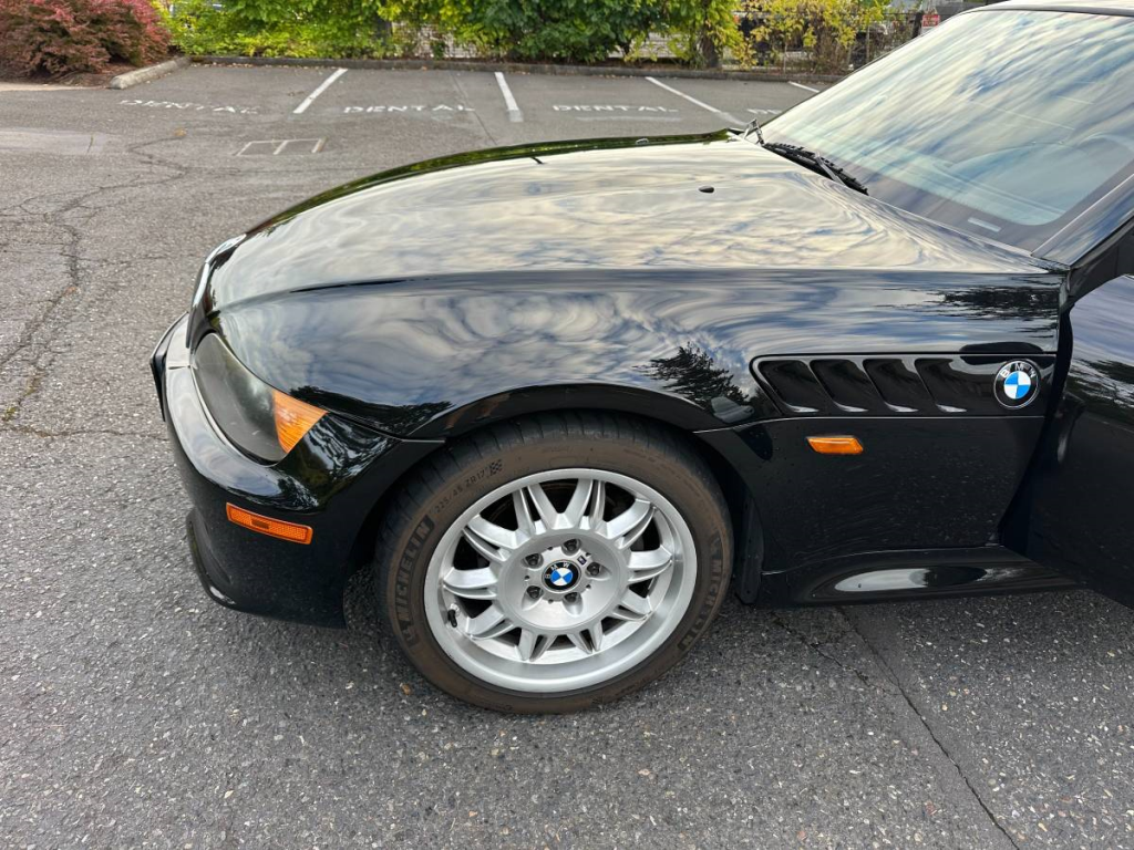 Selling my 1999 z3 coupe. It spent its early years in the bay area until I bought it in 2017 and brought it home to Oregon. I love the car but just don’t drive it that much. It had 103,278 miles when I bought it and now has 115,053. Always garaged. It has a clean title but has a replacement hood and an M front bumper. It apparently had a quality paint job because it still looks great. The rear spoiler was painted to match and with fairly dark tinting on the sunroof and all windows other than the windshield it just looks like it should have come this way. I added well-used M3 wheels with new Michelin Pilot tires 225/45 and 245/40 at 112,287 miles. Maintained at Matrix Integrated with recent battery, oil change and AC recharge. While somebody in the past seems to have wished they had the M version, I like it as it is. In my younger years I would have put a louder exhaust on it but now I enjoy being able to hear the sound of the smooth straight 6 without it being intrusive. The rear view mirror was switched to one that is positioned higher so at 6 feet plus I can see underneath it. There are some minor imperfections here and there. The dome light needs to be replaced. This is definitely a car that you can’t walk away from without looking back at it. I think it is reasonably priced at $15,000.