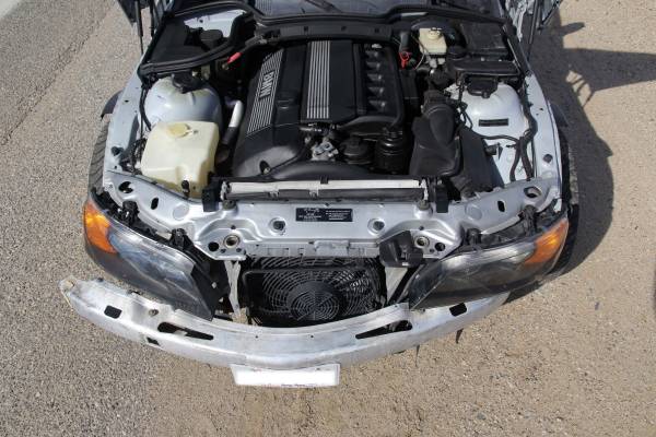 Car has repairable damage to the front bumper which prevents the fan from spinning, this cooling issue must be repaired before any significant distance is covered in the car, otherwise the engine, transmission and everything else is in working order.